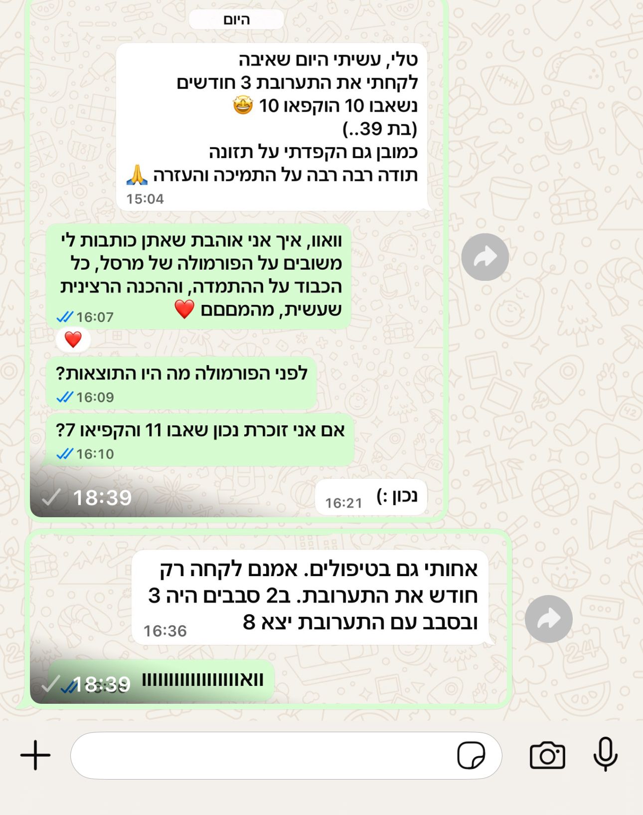 ואם את מבקשת המלצה גורפת אחת, אז לא הייתי מוותרת על תערובת טבעית של אגוזים וזרעים שעלולה להזין תא בודד אחד ולכן טובה אם את מנסה להיכנס להריון באופן טבעי, אם בטיפולי IVF או בשימור פוריות, בשביל להבין את הכוח של הפורמולה הזאת, צריך רק להקשיב לנשים שלקחו אותה כמו שצריך, להלן חלק מההודעות שקבלתי.
