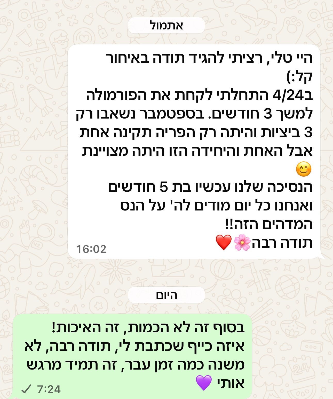מטופלת שהצליחה לשפר מדדים, כותבות לי